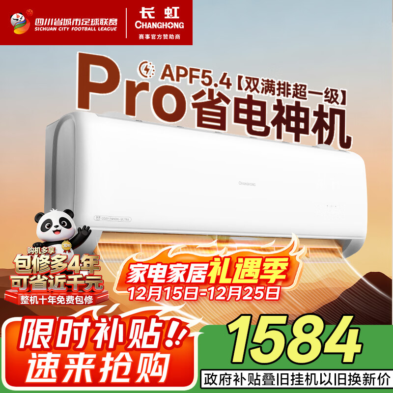 长虹空调大1.5匹熊猫懒Pro超一级省电纯铜管冷暖挂机国家补贴以旧换新KFR-35GW/ZDCSW1+RA(PR)十年包修