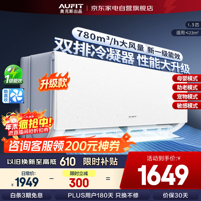 AUFIT空调奥克斯出品大1.5匹新一级能效变频挂机【25年新款】家用卧室KFR-35GW/BpR3AFEA1(B1)以旧换新