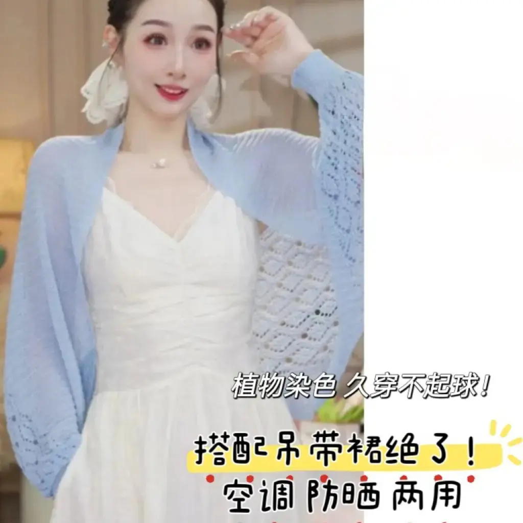 2026新款夏季透气镂空防晒披肩时尚显瘦空调开衫薄款清新坎肩lx