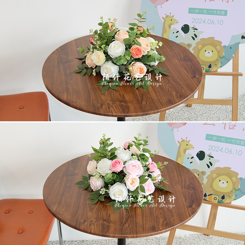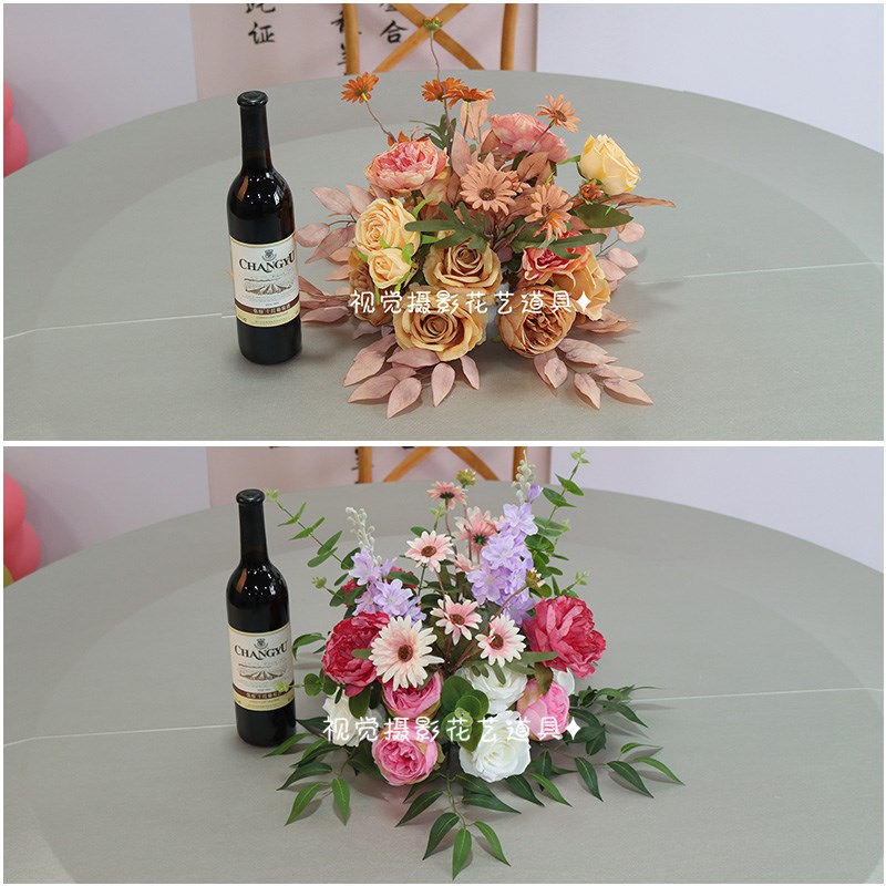 圆形酒店餐桌中间摆花餐厅圆桌桌花空调茶几装饰花艺桌面摆件假花