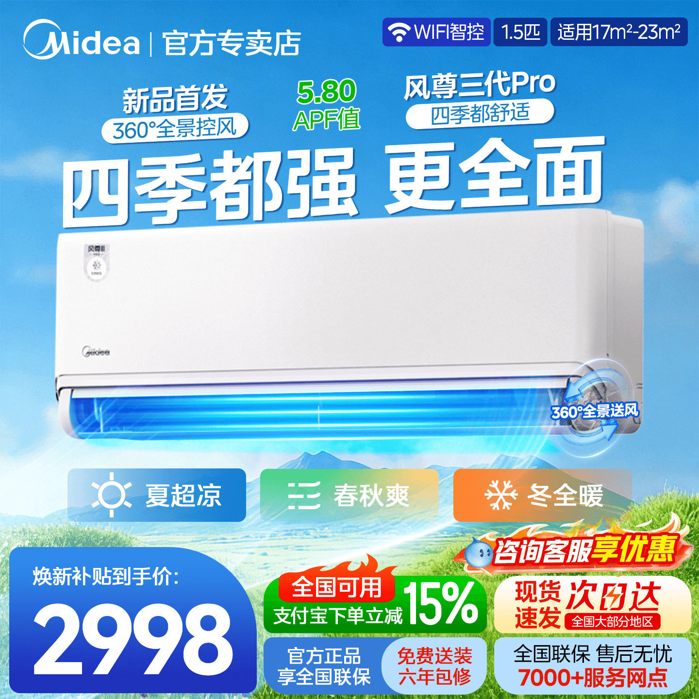 美的空调1.5匹一级能效冷暖变频家用除湿挂机风尊二代35MXCPro