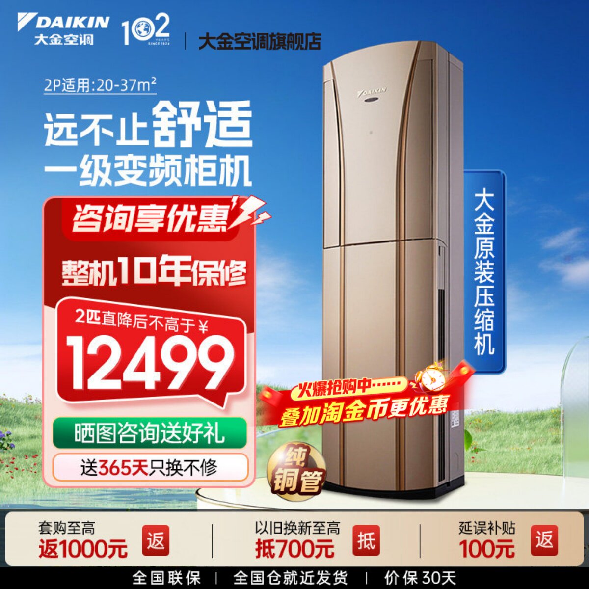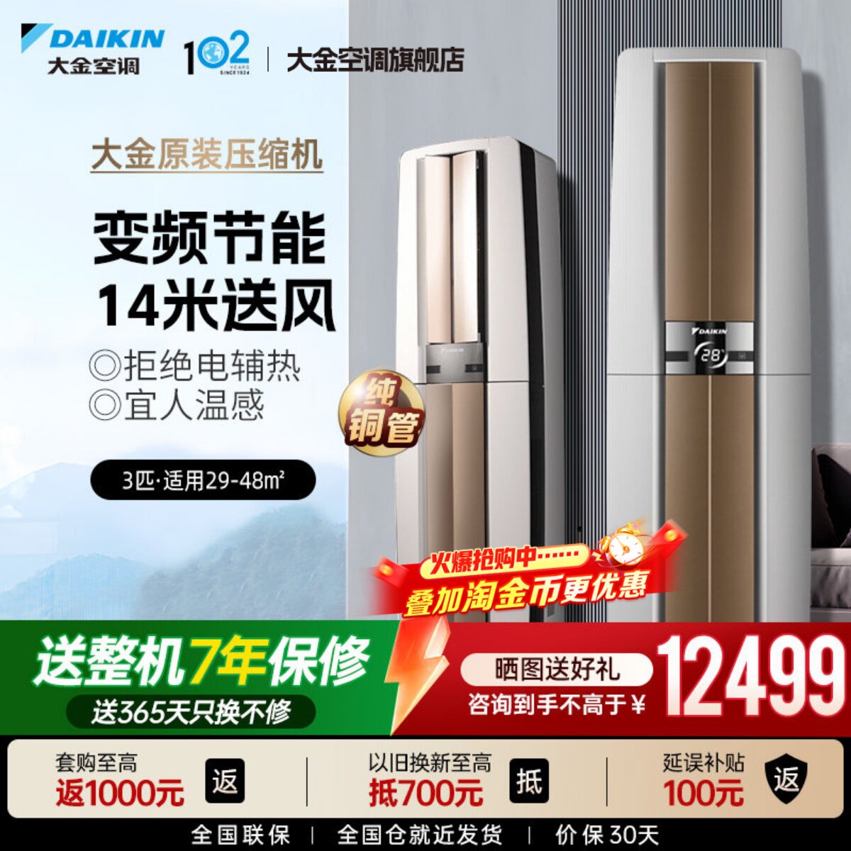 大金空调官旗1级变频大3匹家用悬角式柜机远距送风抗菌防霉W172金