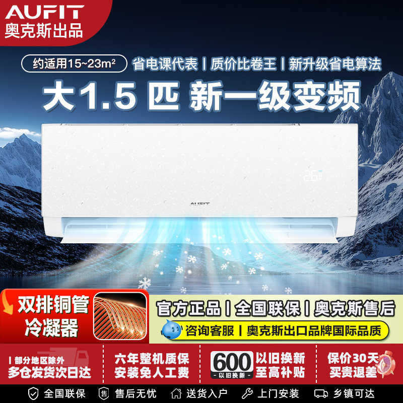AUFIT空调奥克斯出品一级变频大1.5匹p挂机壁挂式冷暖家用卧室