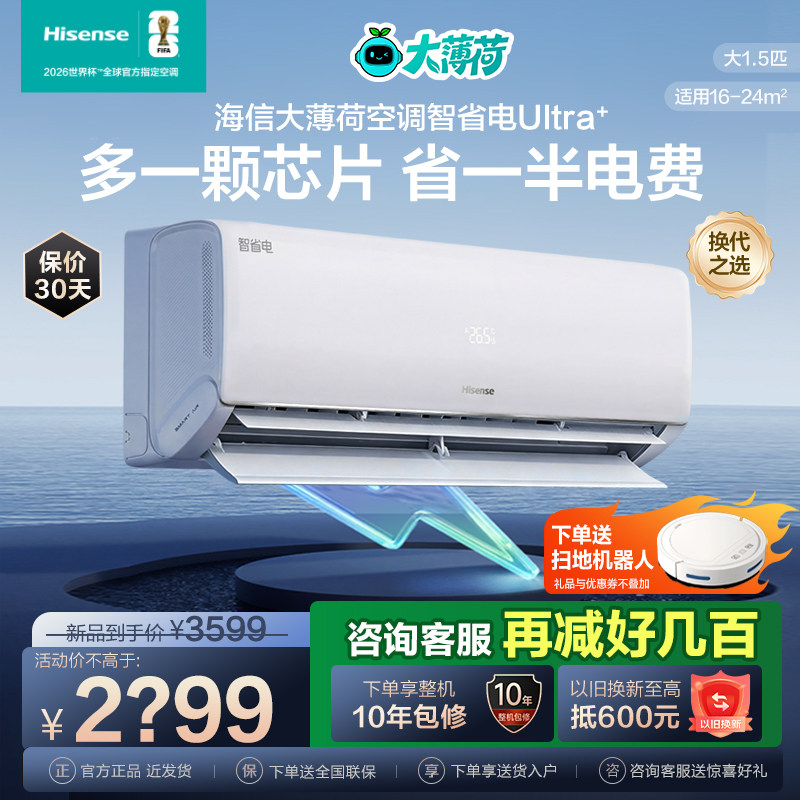 海信1.5匹 AI倍省电速冷热空调挂壁式大风量新一级能效冷暖防直吹