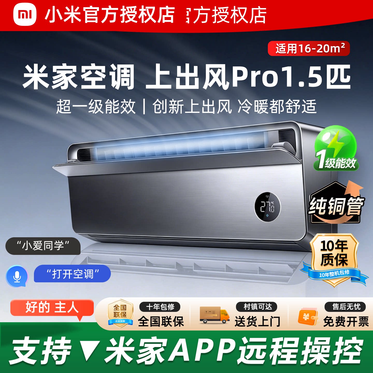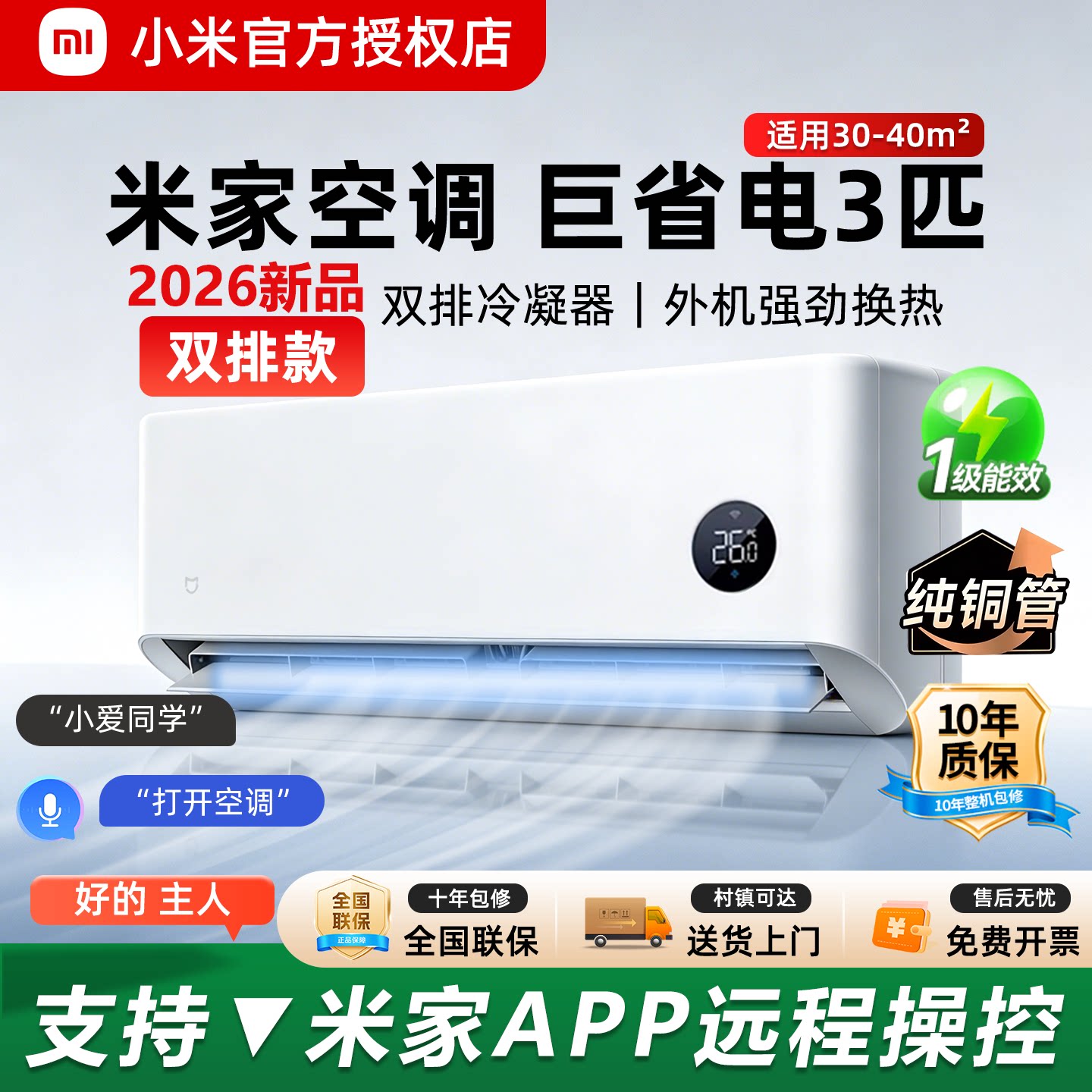 小米自然风Pro3匹 纯铜管 巨省电大挂机超一级能效十年质保2P空调