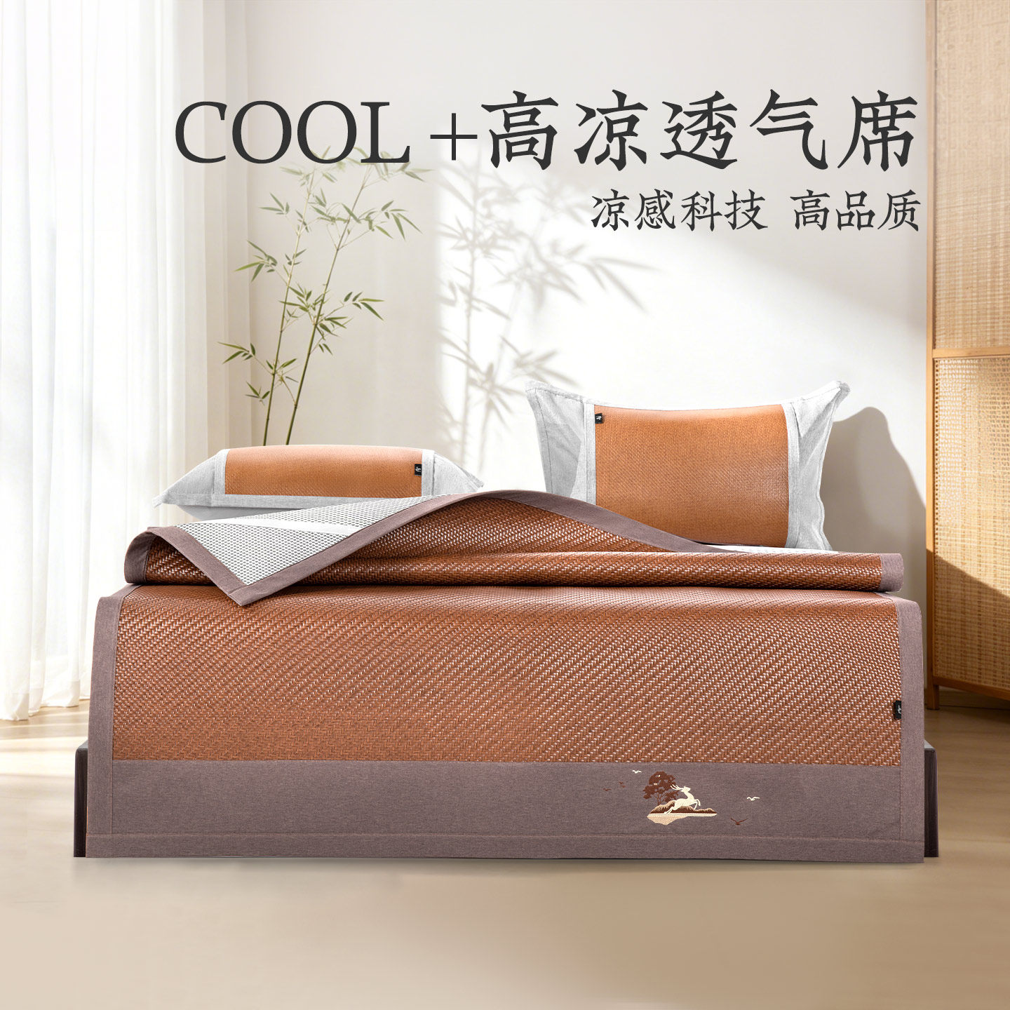 夏季冰丝凉席三件套2026新款艾草藤席子可机洗学生宿舍空调席竹席