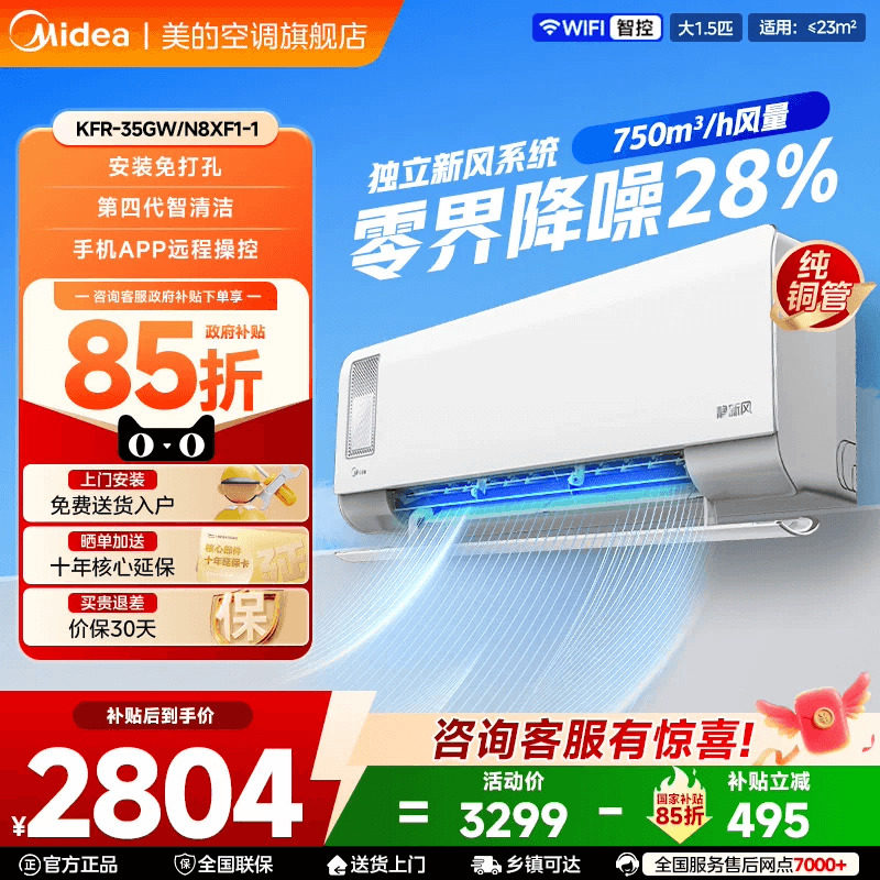 美的1.5匹空调酷省电Ultra一级能效变频家用卧室挂机官方授权