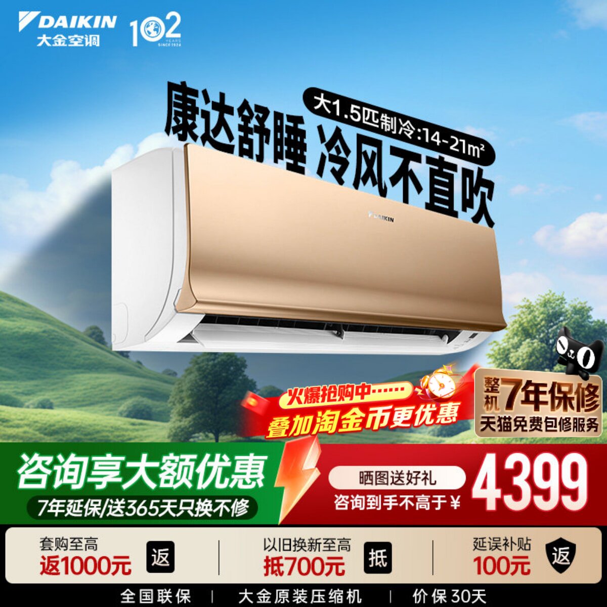 【15%补贴】大金空调 ATXE135ZC-W1一级能效1.5匹P变频冷暖壁挂机