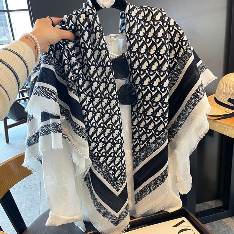 经典字母亚麻手感大方巾女夏季新款高级感围巾薄款办公室空调披肩