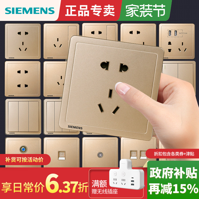 西门子开关插座面板致典日曜金一开五孔16a空调家用86型带usb墙壁