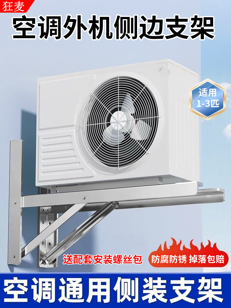 空调室外机侧装支架不锈钢安全加高加长加厚2mm 1p1.5 / 3hp水平