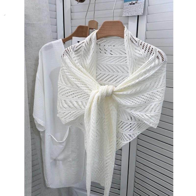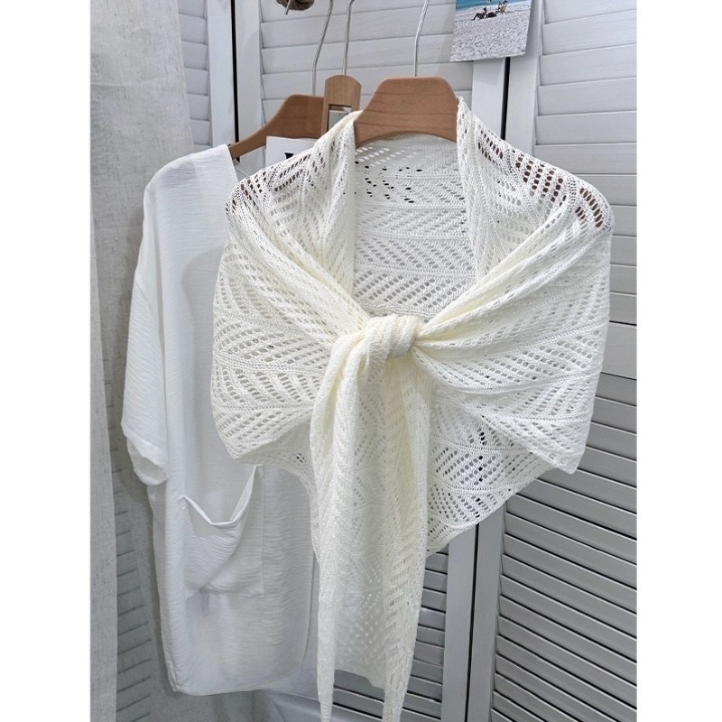2025新款日韩纯色镂空薄款披肩女夏季空调房时尚百搭装饰三角罩衫
