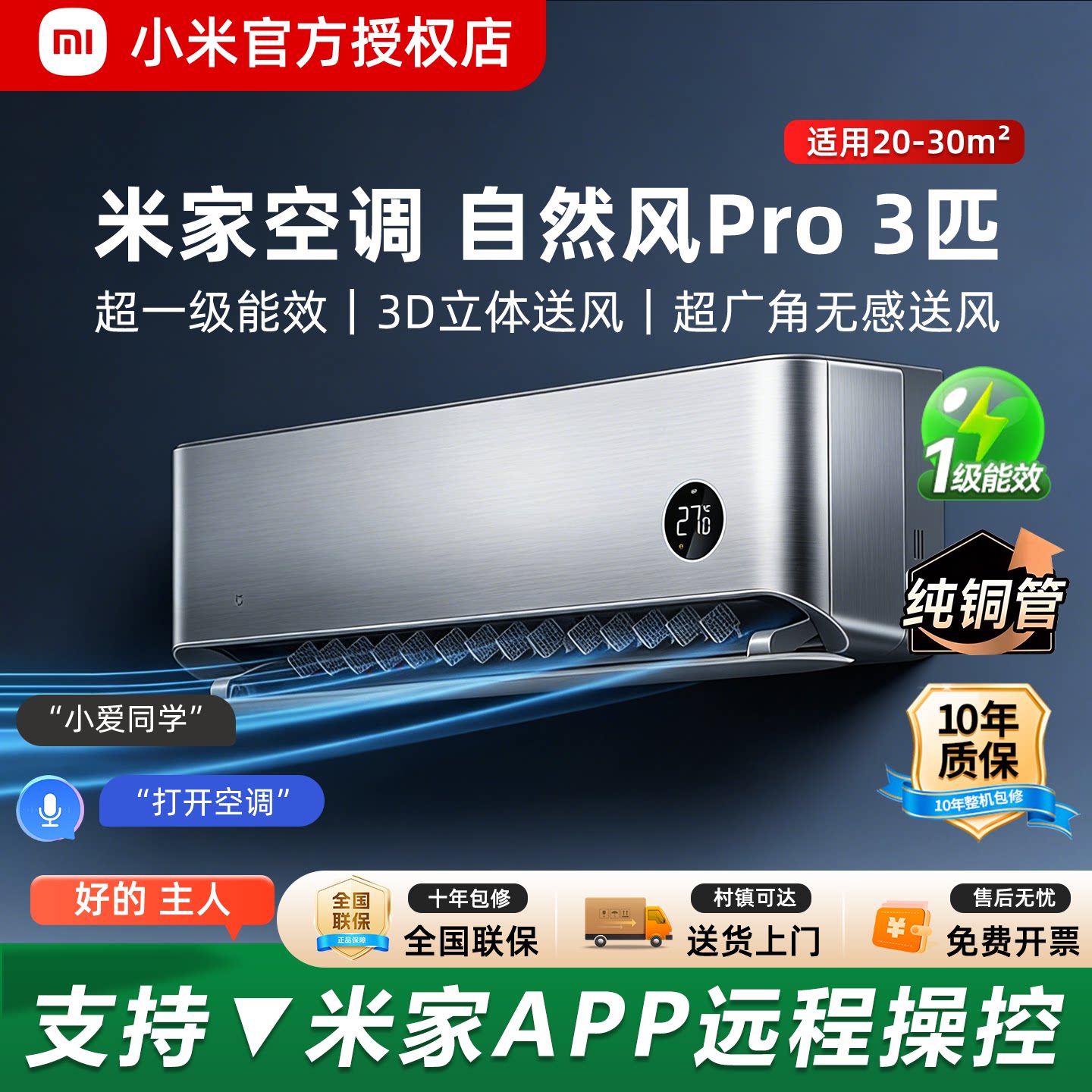 小米空调自然风Pro 大3匹 超一级能效 巨省电大挂机 2P双缸压缩机