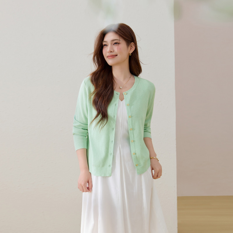 【马卡龙开衫】单排扣空调房外搭针织衫纤莉秀大码女装胖mm春新款