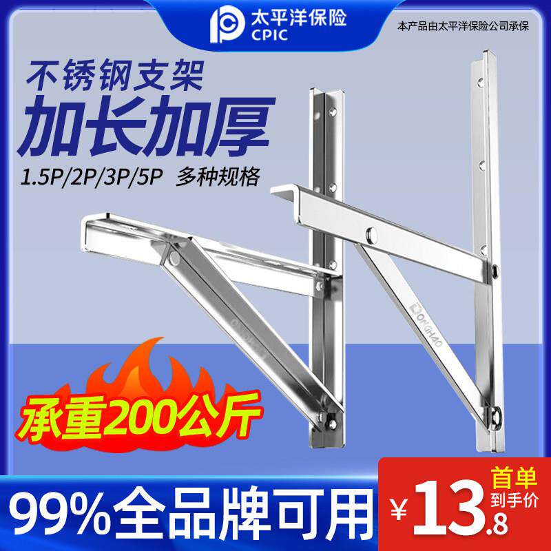 不锈钢空调外机支架1.5匹2P3加厚长通用挂地架安装三角架子5p吊架