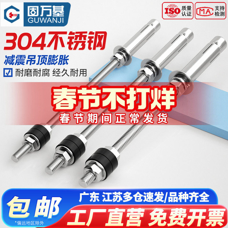 固万基304不锈钢减振膨胀螺丝中央空调吊杆加长吊顶内膨胀栓M6M12
