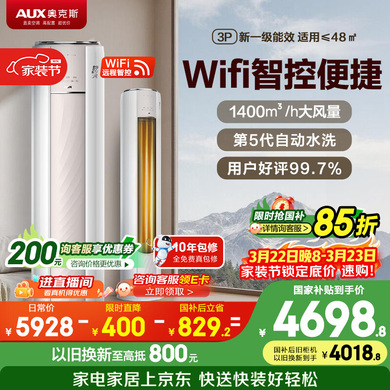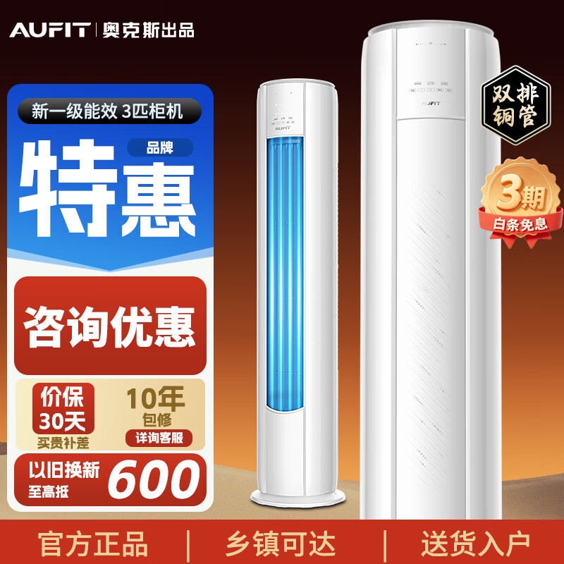 AUFIT空调奥克斯出品家用大2匹3匹变频冷暖省电新一级能效客厅圆柱立式柜机以旧换新补贴 大3匹 一级能效-智控冷暖【WiFi款】