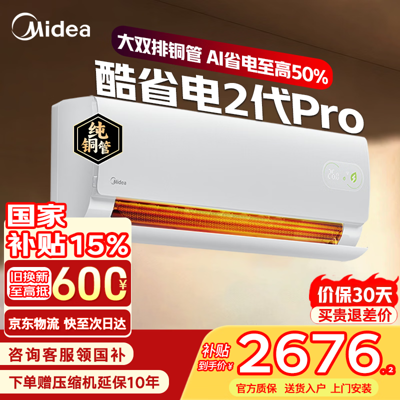 美的(Midea)空调挂机大1.5匹 酷省电二代Pro 双排铜管一级能效变频冷暖家用空调 官方直营 以旧换新补贴 酷省电二代 2026款 大1.5匹 一级能效【双排铜管】