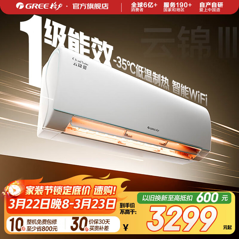 格力(GREE)空调 云锦三代 新一级能效变频冷暖 自清洁智能WIFI 纯铜管壁挂式空调挂机 家电国家补贴 以旧换新 云锦III 新一级能效冷酷款 1.5匹