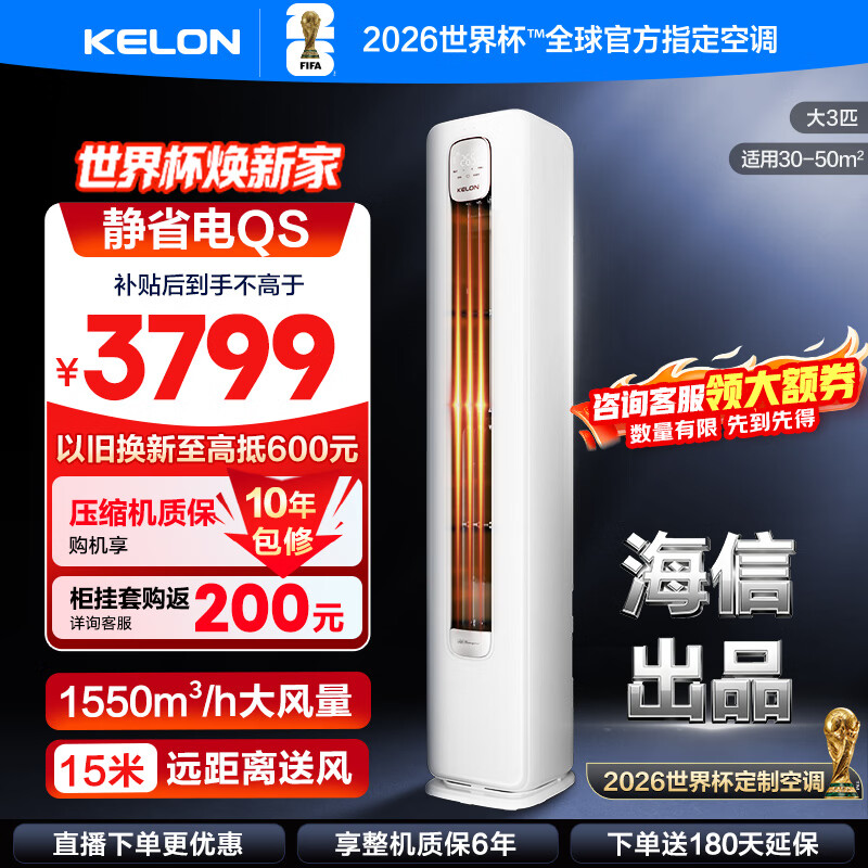 科龙(KELON)空调 海信出品 询单优惠 静省电大3匹柜机立式新一级 变频家用冷暖 轻音好眠 AI高效省电客厅 大3匹 一级能效72QSX1B