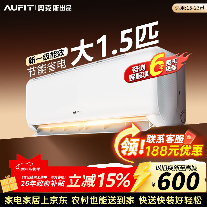 AUFIT空调奥克斯出品 大1.5匹2匹3匹新一级能效变频冷暖家用省电挂机立式柜机 大1.5匹 【遥控款】适用15-23㎡