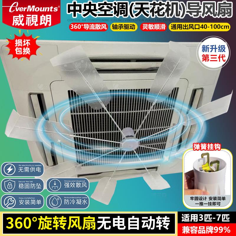 无噪音旋转中央空调导风扇天花板嵌入型空调防直吹风扇饭厅办公室