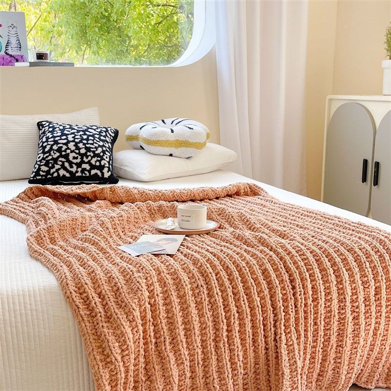 新款手工纯色麻花毯沙发盖毯办公室午睡毯子休闲空调小毛毯新款手