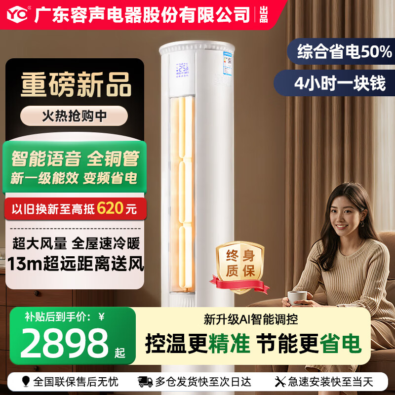 YO广东容声电器股份有限公司出品空调柜机变频新一级能效节能省电冷暖客厅立式空调 大风量 以旧换新 大3匹 一级能效变频省电60%丨语音互动丨京东安装