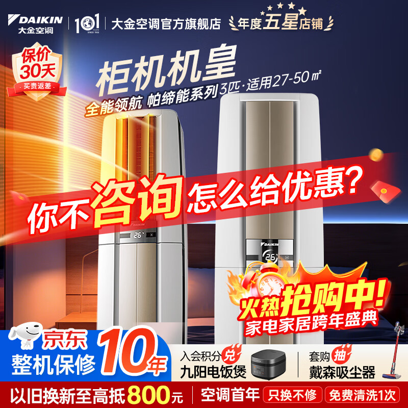 大金空调(DAIKIN) 官方旗舰 大3匹立式柜机 帕蒂能 帕缔能系列 强劲冷暖客厅省电以旧换新 国家补贴 帕缔能 大3匹 FVXF172WC-W白色 新国标能效