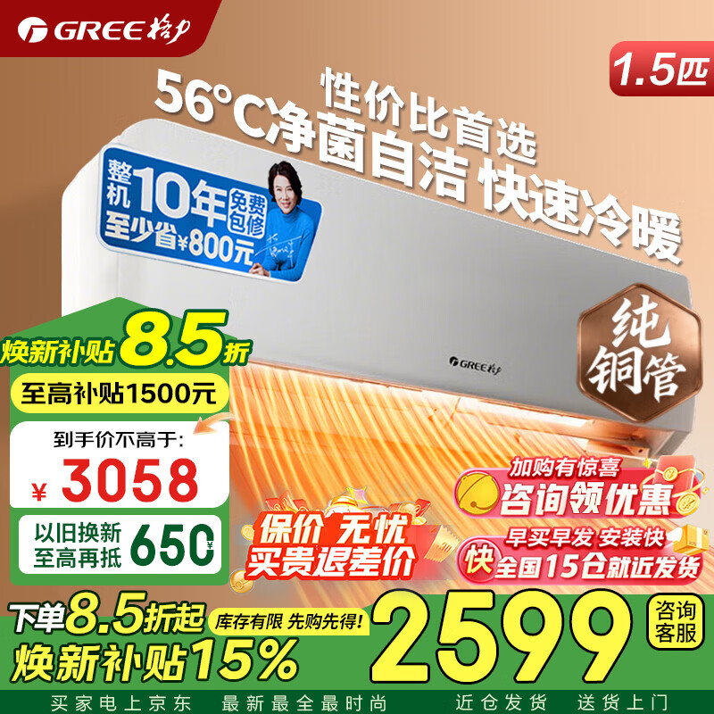 格力空调 1.5匹 新一级能效 变频冷暖 卧室空调挂机 京东官方正品 家电焕新补贴 以旧换新 1.5匹 新一级能效【适用16-20平米】