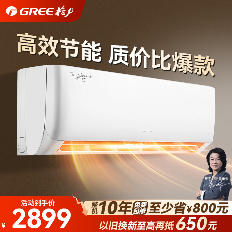 格力(GREE)空调1.5匹 天仪 新一级能效 变频节能 高温自清洁 冷暖两用 壁挂式卧室家用空调挂机省电 1.5匹 一级能效【7档风速 节能低噪】