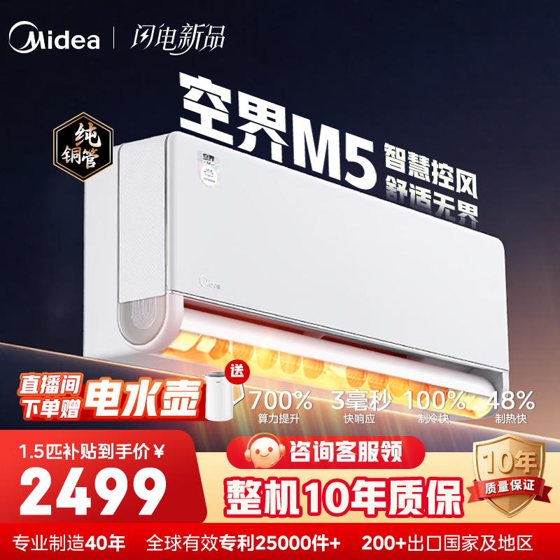 美的(Midea)空调2匹挂机 酷省电 /空界M5 大1.5匹新一级能效 舒适风节能省电 双排铜管蒸发器 国家补贴 空界M5 一级能效 1.5匹 鸿蒙互联