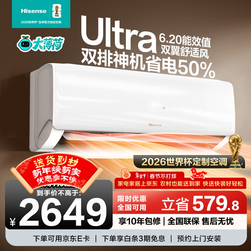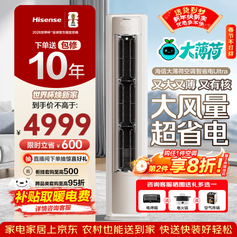 海信(Hisense)大薄荷空调智省电Ultra柜机大3匹 世界杯定制空调AI省电仿真自然风超一级能效KFR-72LW/E370Pro-X1 大3匹 一级能效爆款热销