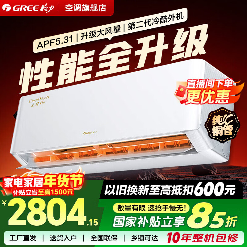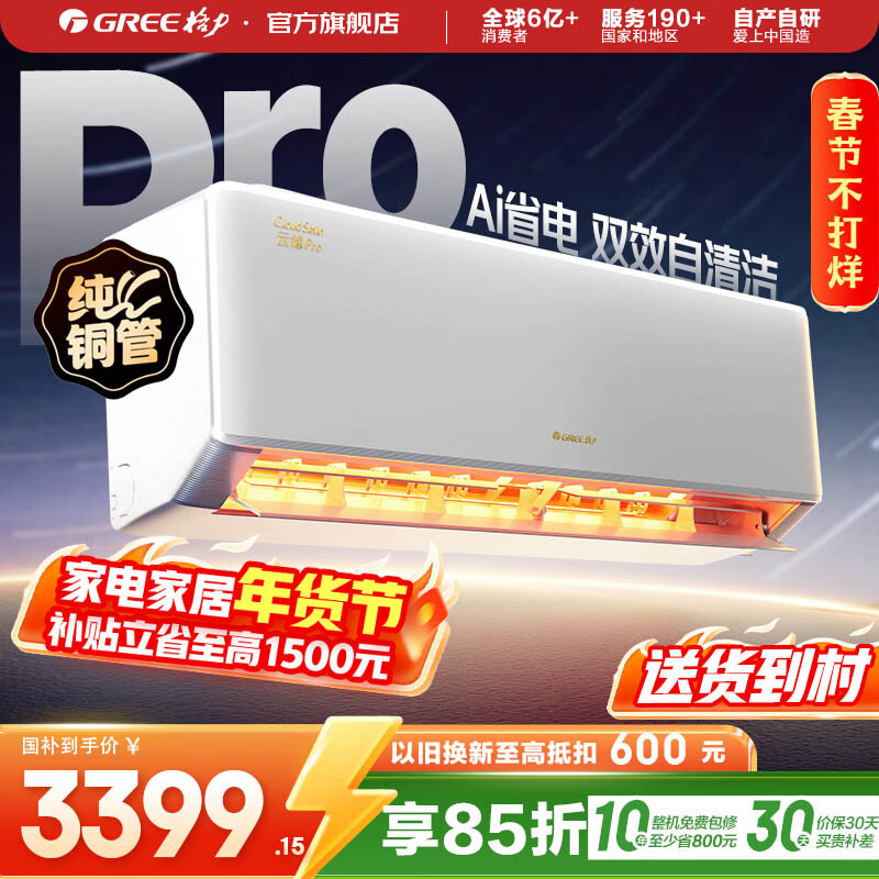 格力(GREE)空调 云佳Pro/Ai节能王子 1.5匹/1匹 新一级能效 变频冷暖 卧室空调挂机壁挂式 智能WiFi 自清洁 云佳pro丨 1.5匹 一级能效【适用15-22㎡】