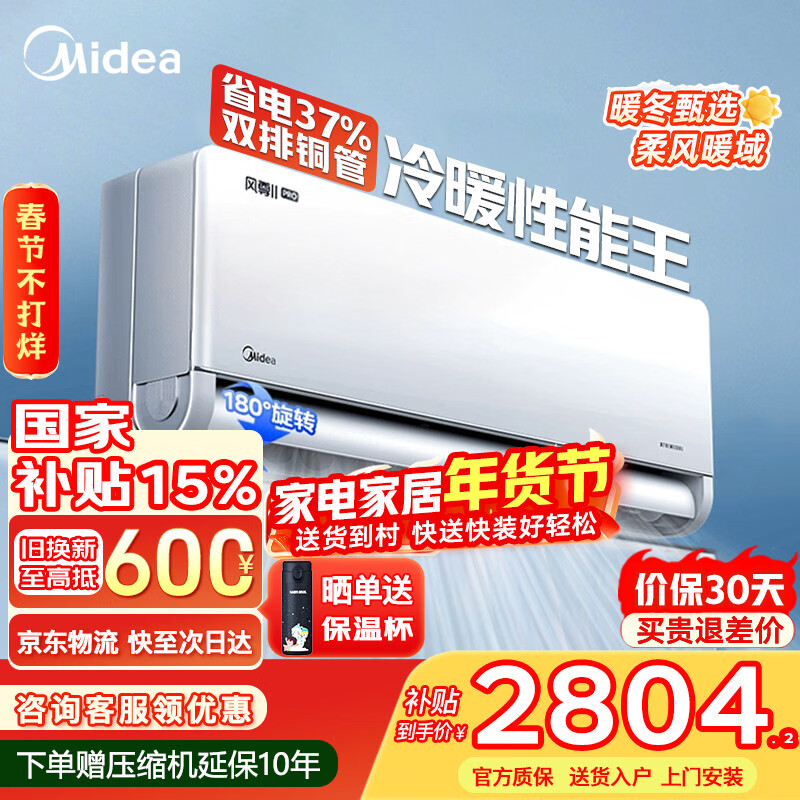 美的(Midea)空调挂机风尊二代Pro大1.5匹 新一级能效 变频节能冷暖两用壁挂式卧室空调防直吹APP智控 以旧换新 大1.5匹一级能效风尊二代Pro 冷暖性能王