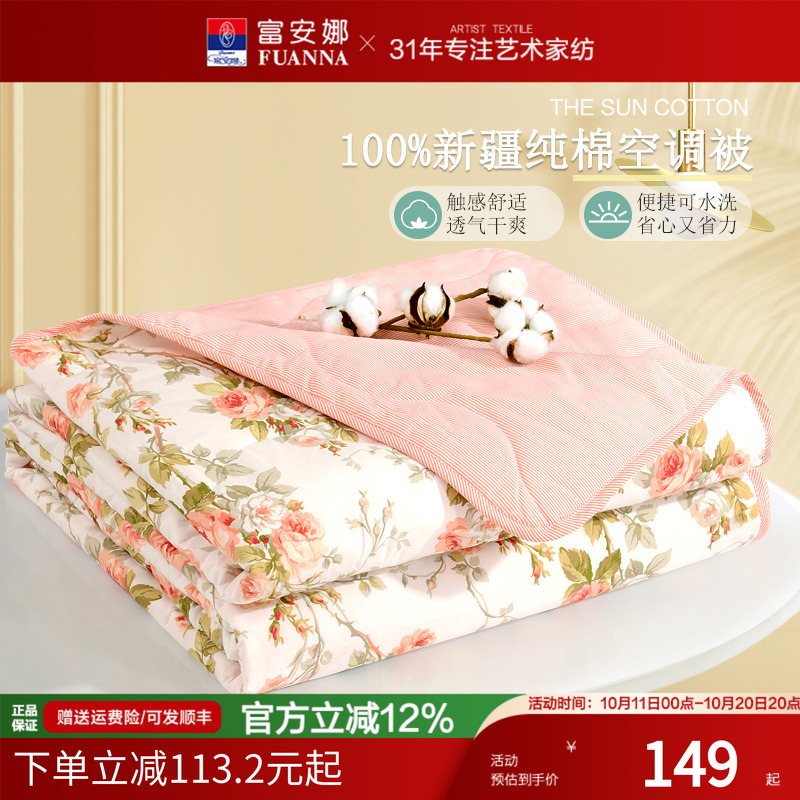 富安娜纯棉夏被空调被薄被夏凉被全棉可水洗夏被单人夏天被芯床品