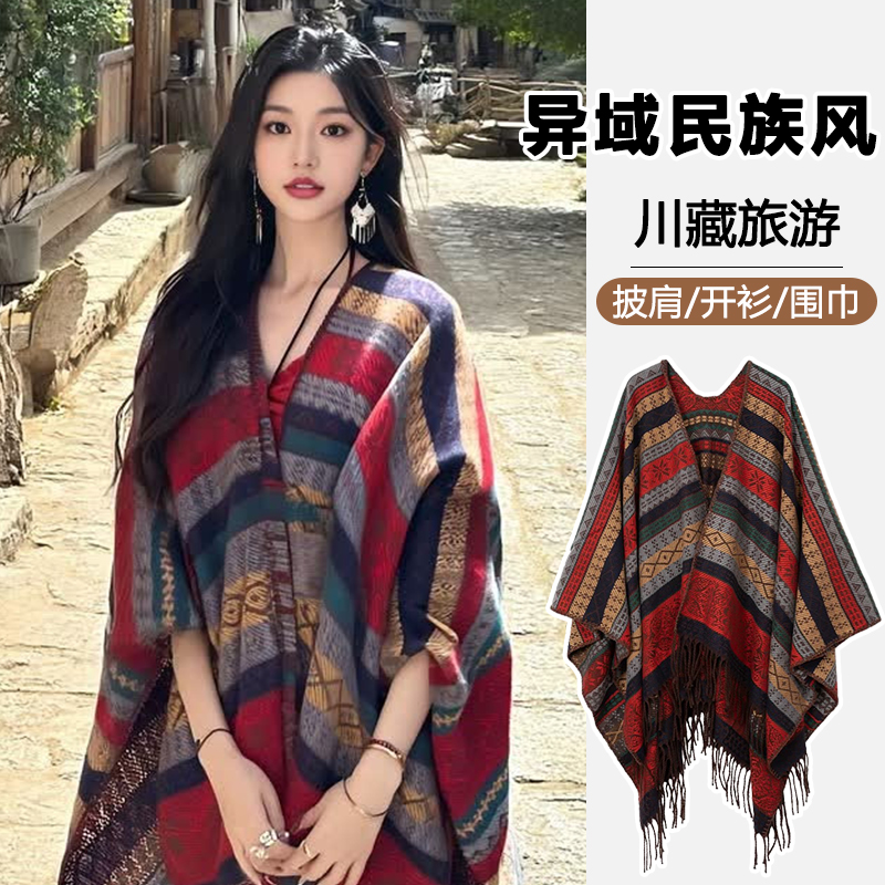 民族风披肩女外搭旅游拍照披风斗篷空调房保暖围巾氛围感开衫披风