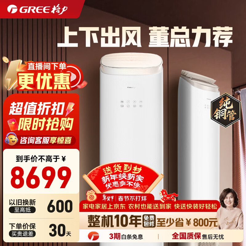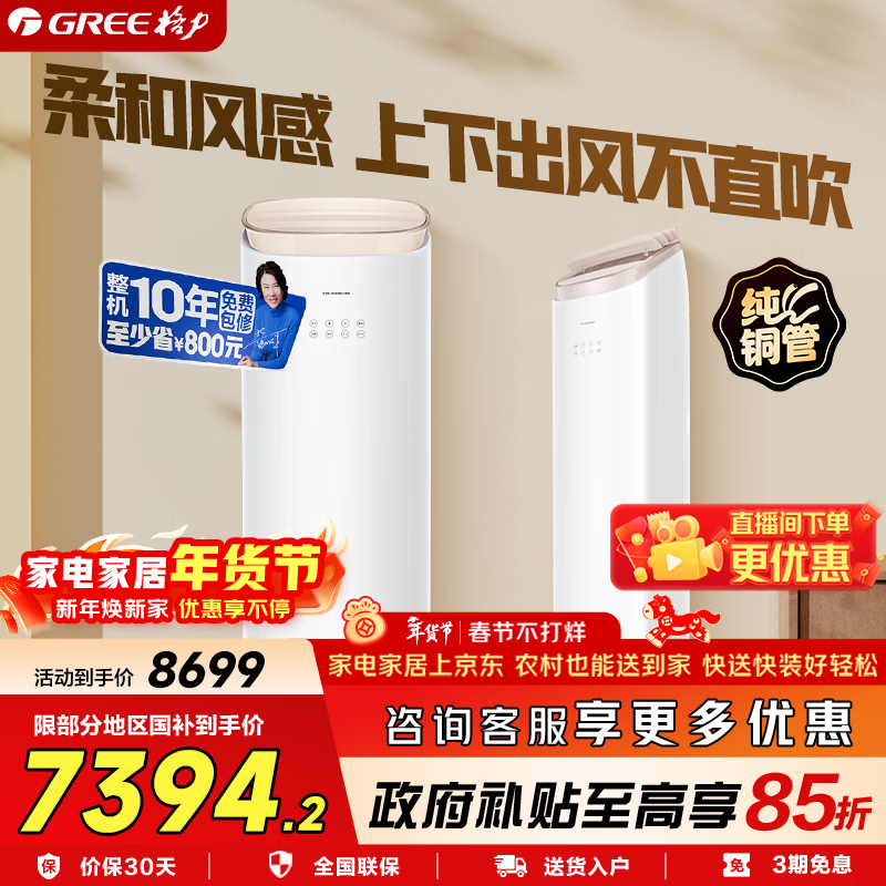 格力(GREE)空调3匹 王者(同京致)新一级能效变频冷暖 纯铜管上下出风不直吹 恒温立体送风 客厅空调立式柜机 王者 3匹 【上下出风不吹人】