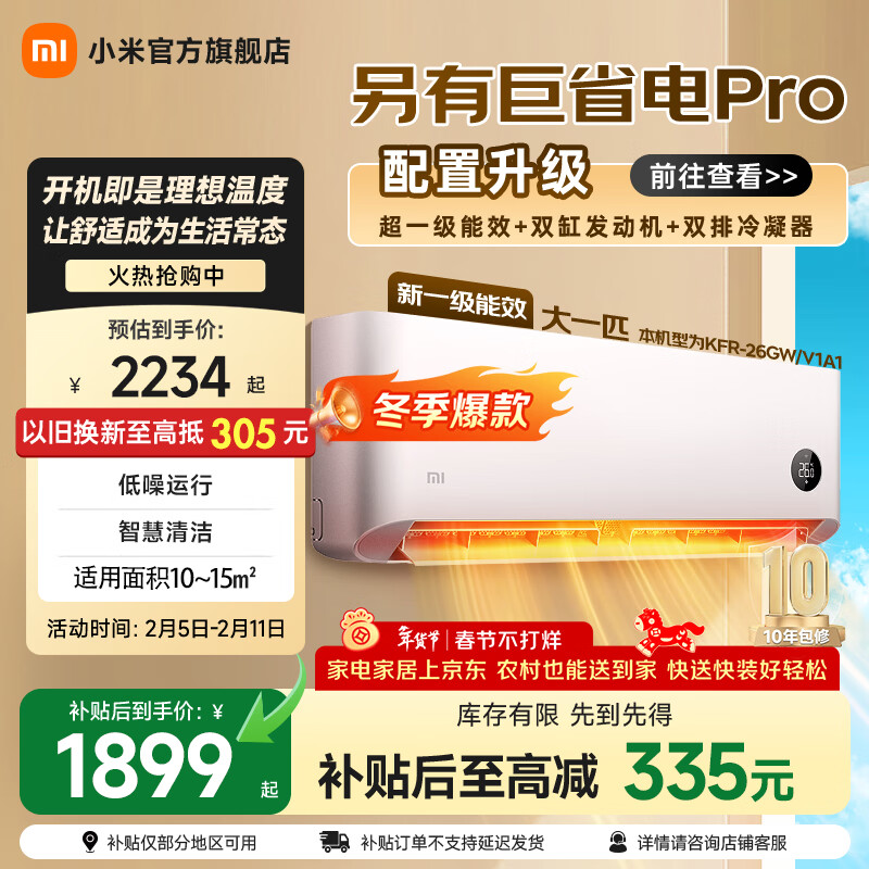 小米空调大1匹新一级能效巨省电 变频冷暖 壁挂式卧室智能空调 KFR-26GW/V1A1 巨省电 快速制冷/热 大1匹 低噪运行 大1匹 一级能效