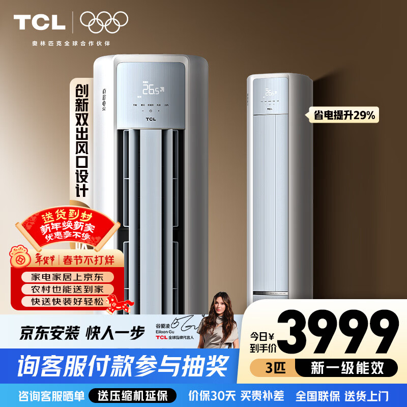 TCL空调柜机 新一级能效 真省电SE柜机 节能省电空调冷暖 客厅立式空调 双出风口空调 3匹 一级能效真省电SE柜机