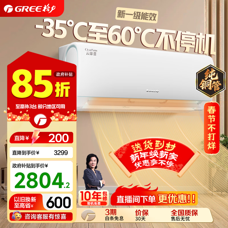 格力(GREE)空调挂机云锦三代/二代新一级能效变频冷暖巨省电 自清洁 WIFI壁挂式卧室空调挂机 家电补贴 云锦III 三代新升级款 1.5匹