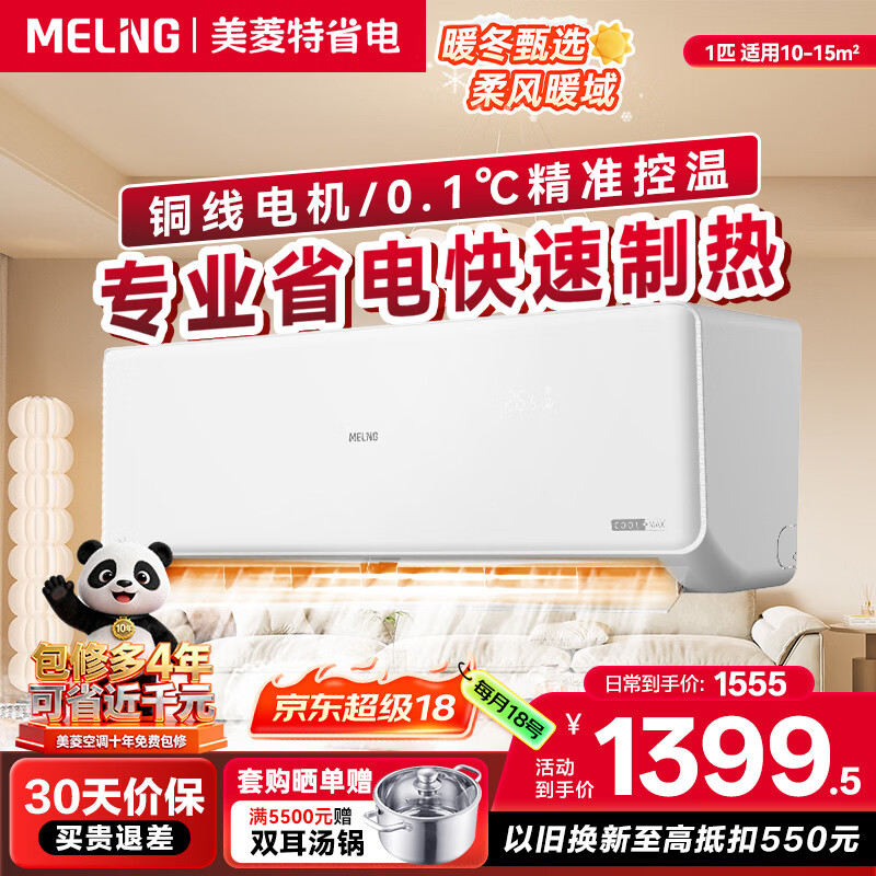 美菱大1匹空调 特省电新一级能效 变频冷暖卧室空调挂机 双重抗菌 10年质保 官方直营以旧换新 特省电 大1匹 一级能效