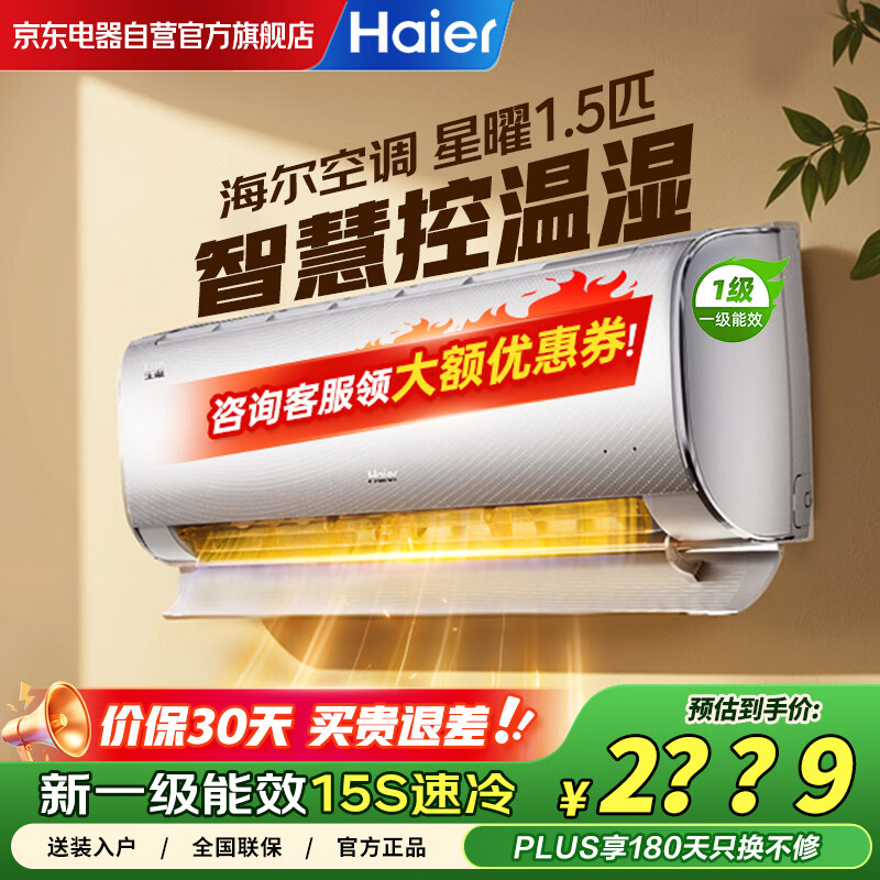 海尔(Haier)空调 星曜1.5匹挂机变频家用新一级能效冷暖壁挂式智能空调KFR-35GW/C2KNW81U1套机