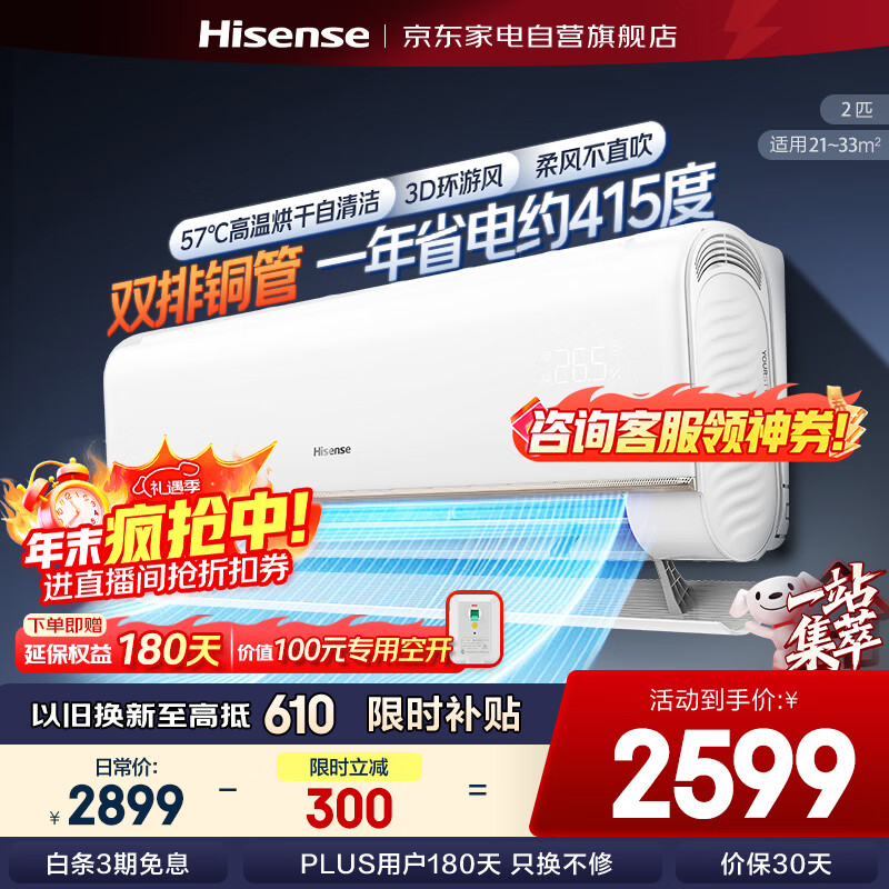 海信(Hisense)空调2匹挂机 易省电 AI省电大风量 新一级能效变频冷暖 空调挂机KFR-50GW/K210D-A1(G)