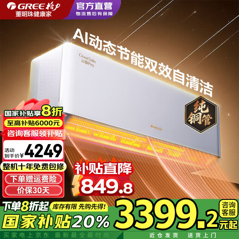 格力(GREE)空调挂机1.5匹云锦Pro 新一级能效 家用卧室变频节能省电变频冷暖 以旧换新官方正品家电国家补贴 1.5匹一级能效云锦Pro新款上市
