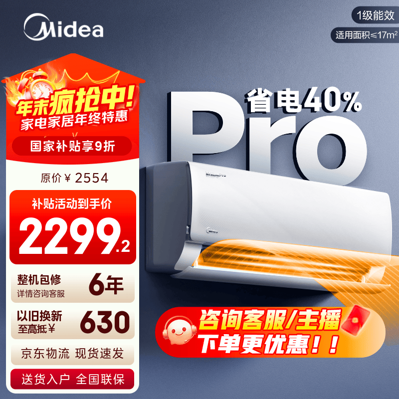 美的空调 爆款推荐 酷省电 新一级能效 变频冷暖 家电国家补贴入口 节能省电家用卧室挂机 以旧换新 酷省电Pro 大1匹 省电40%