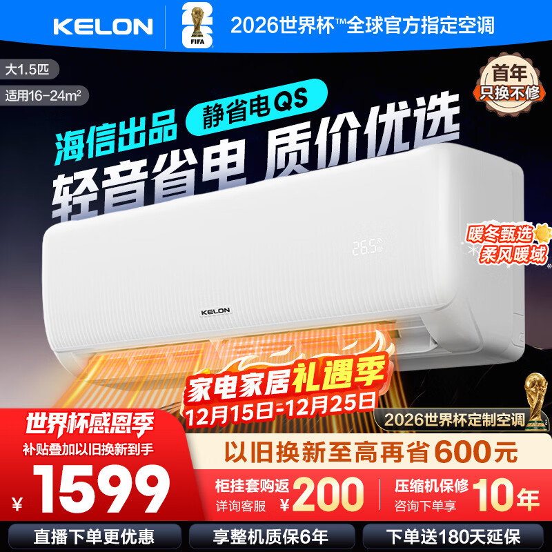 科龙空调 海信出品 询单减100 静省电QS 大1.5匹挂机 新一级能效变频家用冷暖 卧室壁挂式智能低音 大1.5匹 一级能效 35QS1X1