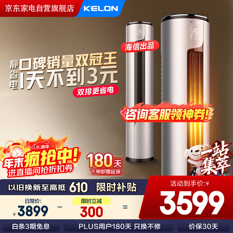 科龙(KELON)空调3匹柜机【海信出品】静省电新一级能效变频冷暖省电双排神机以旧换新KFR-72LW/ME1A1(2N33)