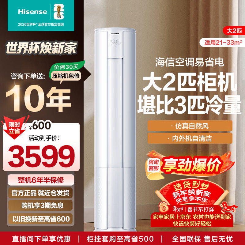 海信(Hisense)空调 大2匹/大3匹柜机 【咨询客服领优惠】 易省电 AI省电 速冷热 大风量 新一级 客厅立柜式 大2匹一级能效【爆款】50E80