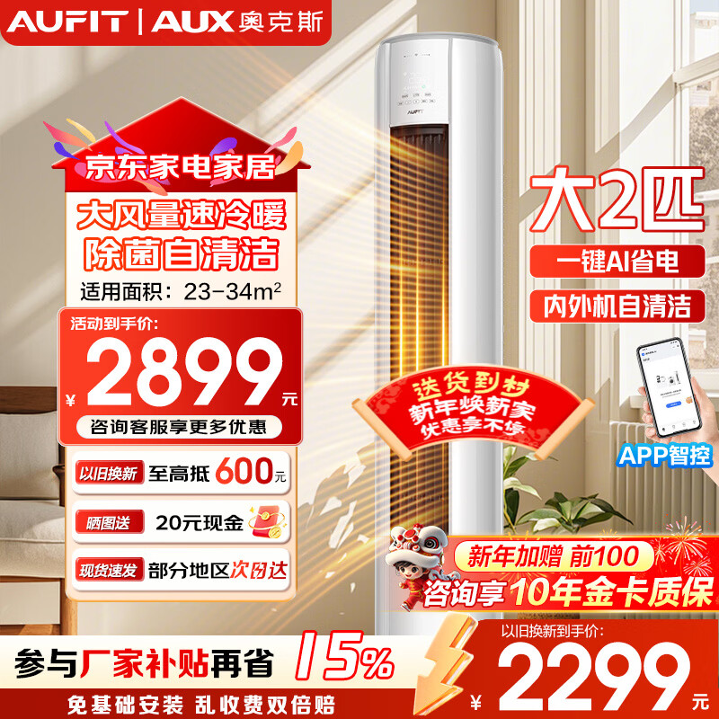 AUFIT空调奥克斯(AUX)出品大3匹柜机新一级变频冷暖自清洁家用客厅大标间大风量立柜式智能以旧换新 2匹 一级变频支持冷暖智能省电防直吹独立除湿